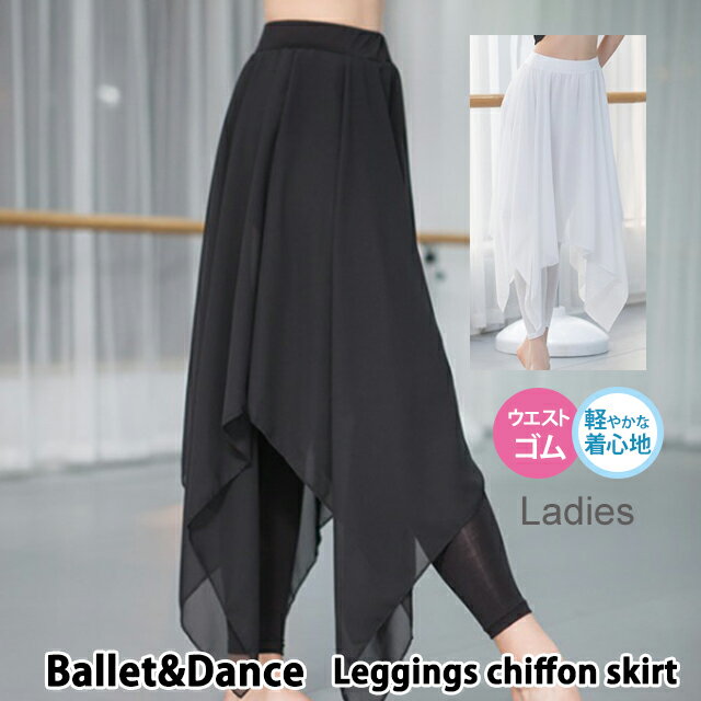 スカート レギンス 春 夏 ダンス スポーツ スパッツ ダンス衣装 レッスンウェア スポーツウエア シフォン シースルー レギパン ストレッチ ボトムス 重ね着 10分丈 ヨガ バレエ 涼しい ランダムカット ブラック ホワイト cr5n-mcv