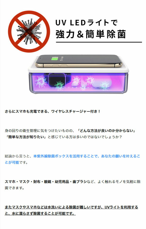 除菌ケース マスク uvボックス 送料無料 消毒 赤外線 殺菌 滅菌 紫外線UV除菌器 ウイルス対策 UV除菌 大容量 簡単除菌 強力除菌 スマホ充電 ワイヤレスチャージャー 歯ブラシ メガネ 幼児用品 財布 眼鏡 置くだけ充電