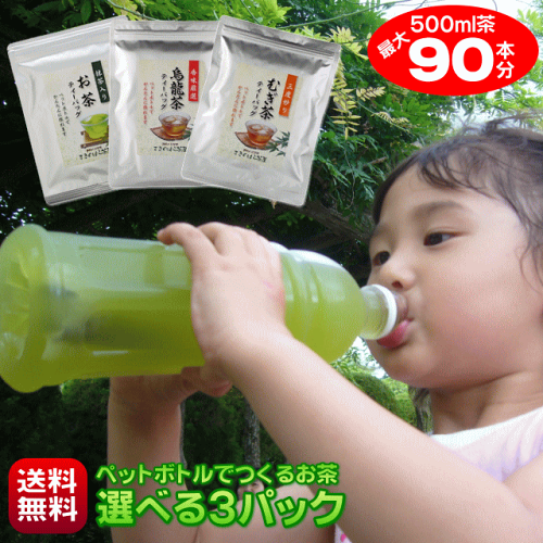 お茶 ペットボトル 500ml 送料無料 90本 ティーバッグ 緑茶 烏龍茶 麦茶 玄米茶 ほうじ茶 はと麦茶 3パック選べる 水出し緑茶 無添加 お試し ポスト投函