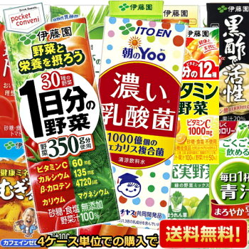 【4ケース単位のご注文で送料無料】伊藤園 紙パック飲料 選べる200ml紙パック×24本入 (野菜ジュース 1日分の野菜 充実野菜 ビタミン野菜 理想のトマト 青汁 黒酢で活性 緑茶 ほうじ茶 むぎ茶)